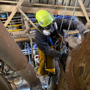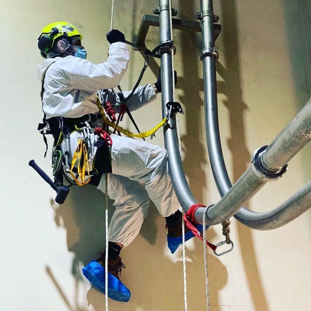 Realizamos el mantenimiento donde ningún otro puede llegar. Con las maniobras de acceso por cuerdas podemos desplazarnos de forma rápida y segura para realizar el mantenimiento que su industria necesita.