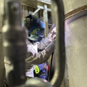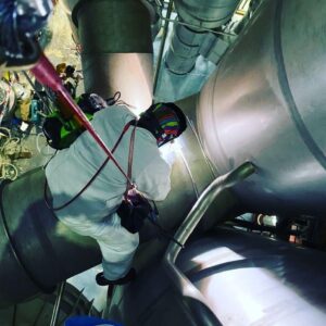 Soldaduras TIG y arco manual realizadas por soldador calificado, los cuales acceden a travez de sistemas de acceso por cuerda a zonas de difícil acceso en las cuales no se puede llegar con alza hombres andamios o escaleras.